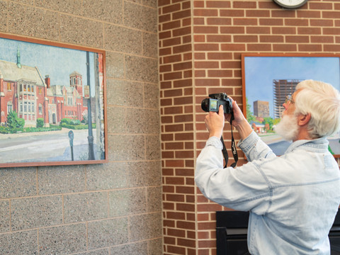After the lecture, many in the audience stopped by to take a peek at the Walter Burt Adams paintings recently hung in the library at the Levy Senior Center.